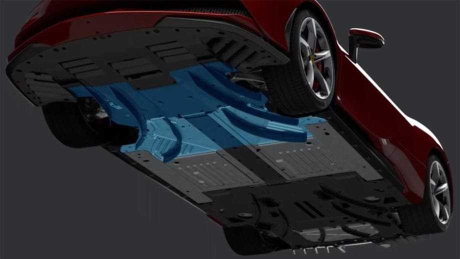 Аэродинамические элементы направляют поток воздуха под днищем по заданным направлениям. Формируется зона разряжения, которая создает дополнительную прижимную силу. Функции антикрыла выполняет подъемная часть крышки моторного отсека. Этот элемент перемещается в нужное положение по результатам скорости и других показателей, которые обновляются с периодичностью 100 раз за секунду.