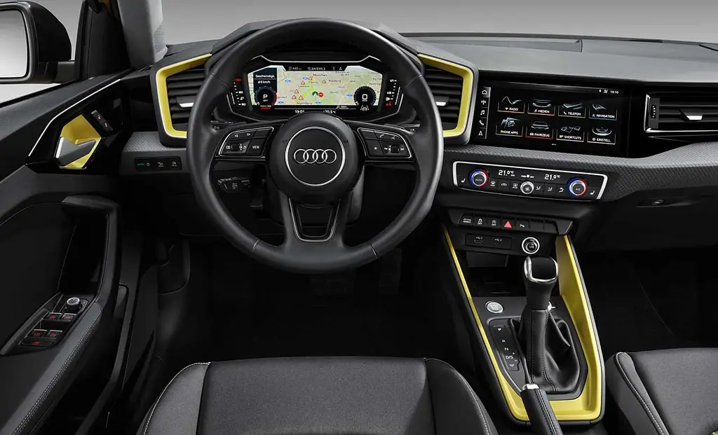Интерьер нового A1 Sportback выполнен в современном фирменном стиле Audi, c 10,1-дюймовым «головным» дисплеем мультимедийной системы MMI. Экран борткомпьютера в стандартном варианте – 10,25-дюймовый, в качестве опции можно заказать полностью цифровую «приборку» Virtual Cockpit.