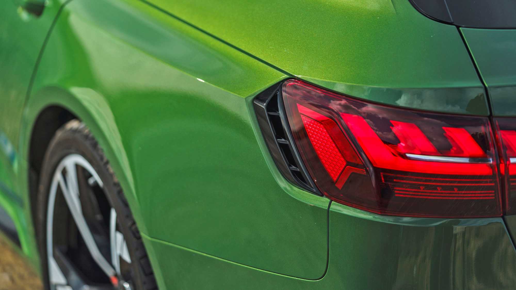 It has to be said, the RS4 has far more presence in real life than it does in pictures – those arches punch out an extra 24mm in width compared with the standard A4 Avant and it sits 30mm lower. Giant oval tailpipes manage to make it look lower as well as wider. The dark vents flanking the tail lights aren’t actually real, disappointingly, but help to add even more visual width to reinforce its brawniness.