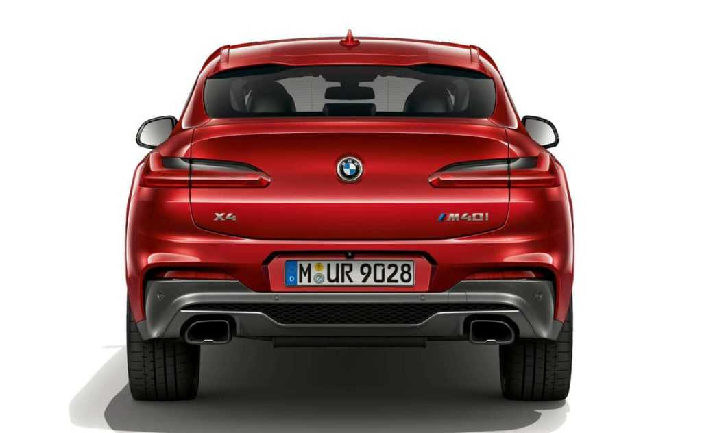Задняя часть BMW X4 получила модернизированные светодиодные фонари, разделенные на секции и установленные на крыле и крышке багажника. В бампер с диффузором из глянцевого черного пластика интегрированы насадки для выхлопных патрубков. Обновленный BMW X4 сохранил неизменными детали кузова, что упрощает ремонт автомобиля. Стандартные машины окрашены белой эмалью, предусмотрено 6 красок с визуальным эффектом «металлик».