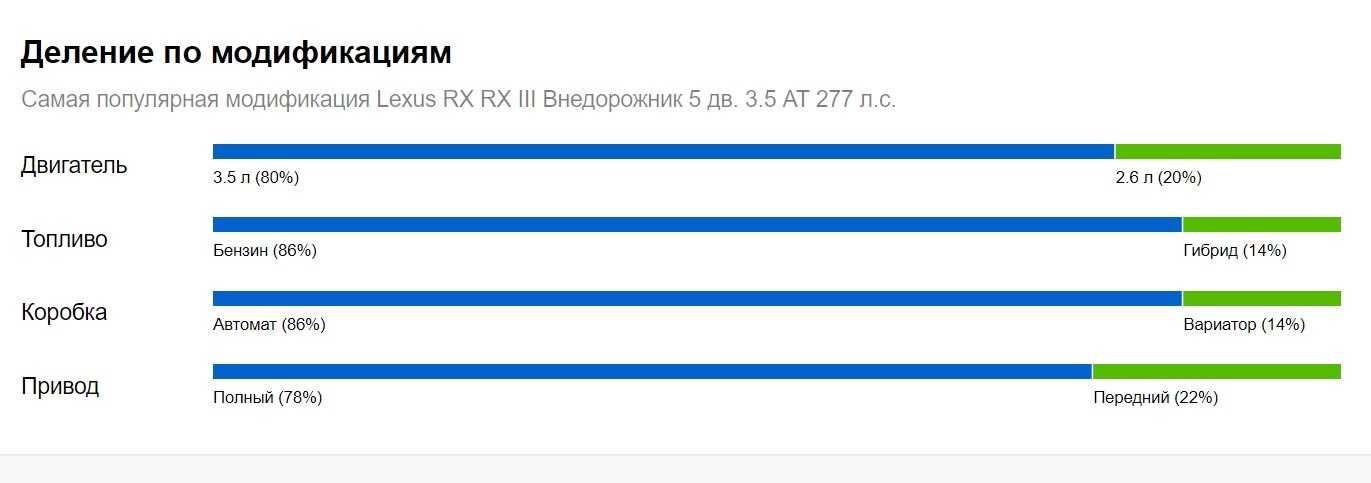 Но найти их действительно сложно. На вторичном рынке страны только 14% Lexus RX оснащены гибридной силовой установкой. Большинство из них продается с 3,5-литровым атмосферным двигателем, полноприводным двигателем и автоматической коробкой передач. В таком случае сложно найти относительно плохую конфигурацию для RX.