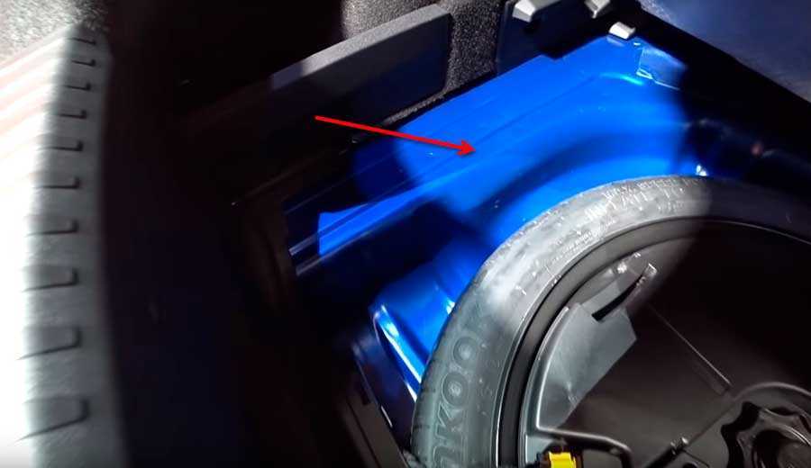 В отличие от Гольфа 8, у испанского автомобиля «подполье» под малоразмерную запаску не имеет никакой отделки, виден ничем не прикрытый окрашенный металл.