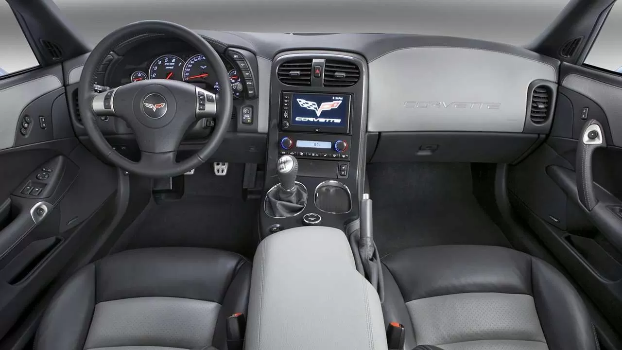 Рулевая колонка из трех спиц обшита полностью кожей и в нее внедрены кнопки управления аудиосистемой Chevrolet Corvette C6 и Bluetooth. Панель приборов особо не отличается от предыдущего поколения. На стойках панели находится множество кнопок, в том числе для круиз-контроля, хотя большинство привыкло видеть регулировки круиза на рычажке за рулем.