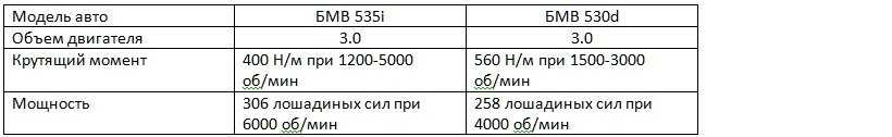 Как видно, дизельная «пятерка» слабее на 48 лошадиных сил, но выигрывает у