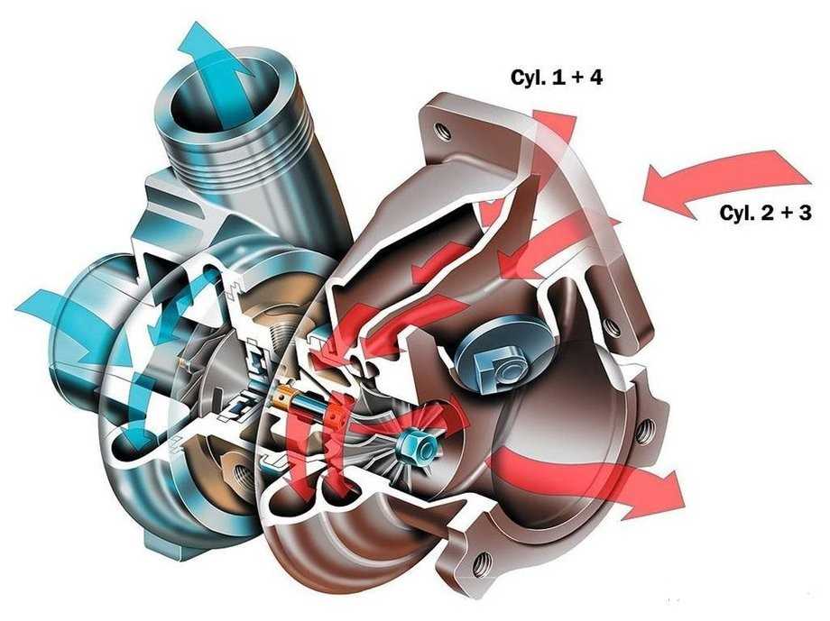 Принцип действия такого двигателя предельно прост – низкие обороты приводят в действие механическую или же электронную турбину, именно это дает давление, что ускоряет автомобиль даже с холостых оборотов. После этого включается обычная турбина и это избавляет автомобиль от турбоямы.
