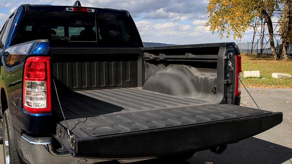The 2023 Dodge 1500 comes with a 6-foot-4-inch or 5-foot-7-inch bed, depending on the cabin style. You can place 4-foot-wide sheets of plywood between the wheel wells, and there are plenty of features to make the bed more usable, such as cargo lights, a tailgate step, and RamBox built-in storage boxes. The existing 60/40 split multifunction tailgate can open downwards like normal or open to the sides like barn doors. The rear seats of the Four Cab models have ample room for adults, but the Crew Cab provides the widest rear seats in its class and little more than its smaller counterpart. The Ram’s wide doors also make it easy to get in and out of the cabin.