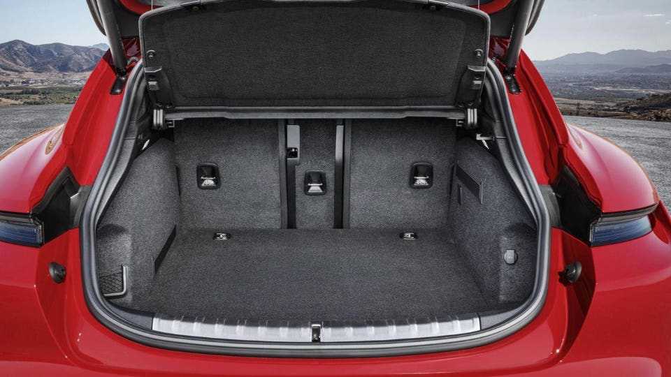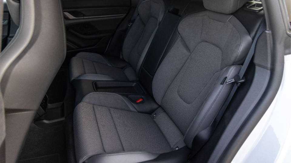 Места для ног очень много благодаря тому, что Porsche называет набором «гаражей для ног» или углублениями в аккумуляторе в пространстве для ног заднего пассажира. Это увеличивает количество предлагаемого пространства, сохраняя при этом обычно низкую и спортивную посадку.