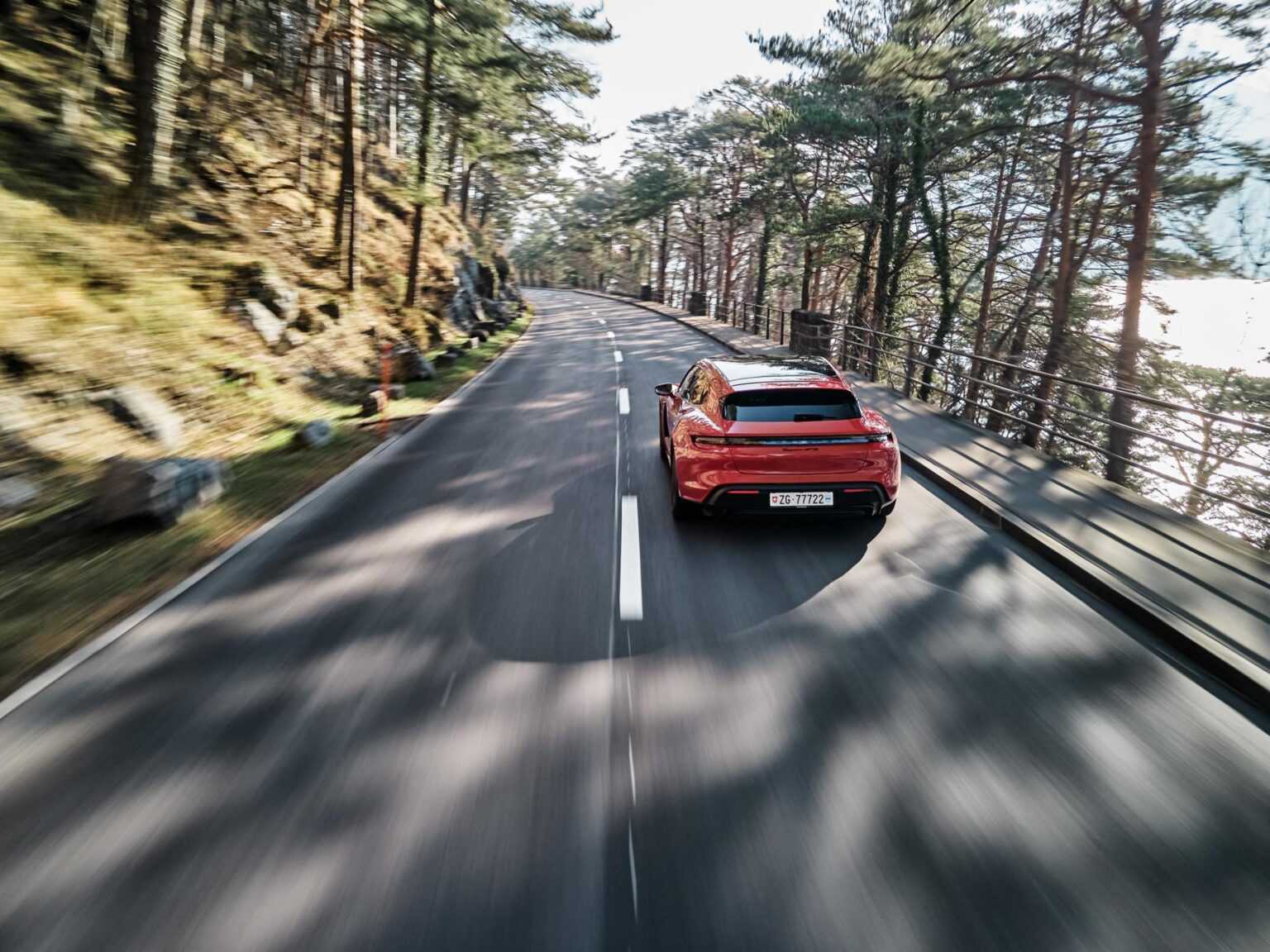 Or grab a $135,000 GTS sedan, which offers a Turbo-like fun quotient (plus the Turbo’s rear motor and power inverter), 590 horsepower, the best drag coefficient of the entire Taycan family, unique suspension and powertrain calibrations and sportier front bumpers.