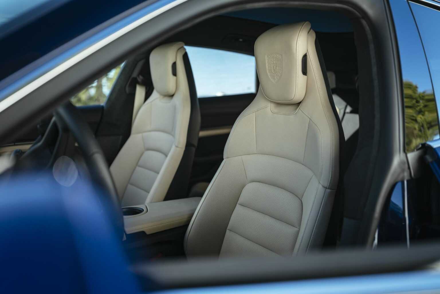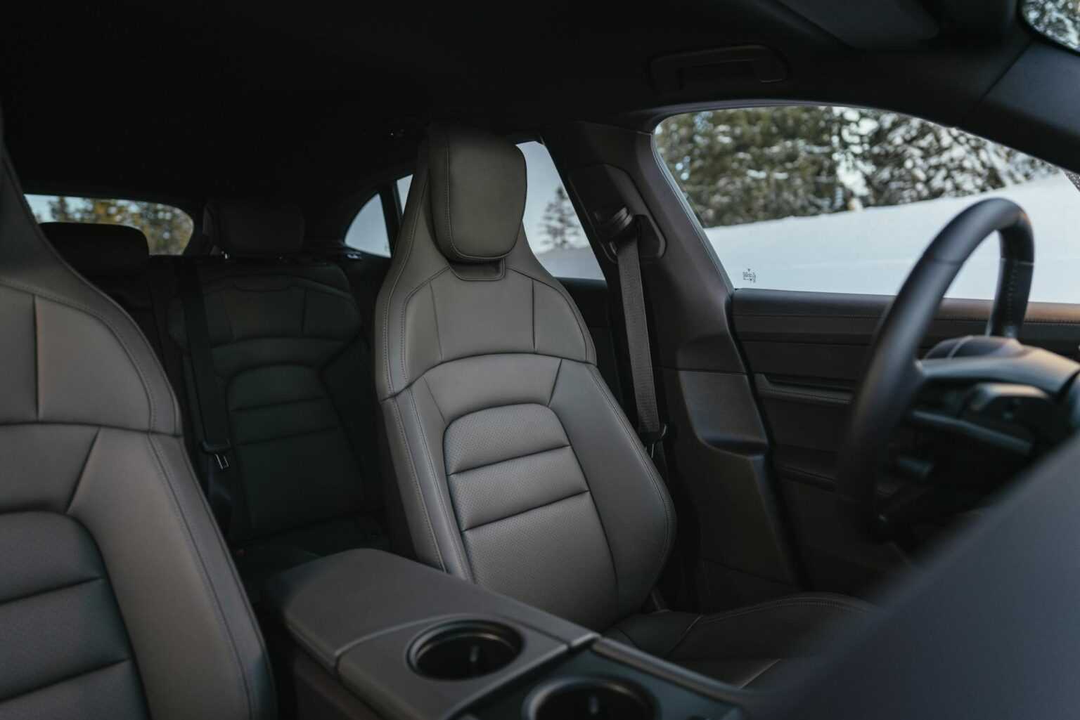 The Taycan seats four people (compared to most sedans that seat five) and while the interior looks small if you’re standing outside the car, the levels of comfort inside are impressive. Not only can you fit a rear-facing car seat in the back without pushing the front passenger’s seat into the dashboard, but taller passengers also fit in the rear seats without discomfort.