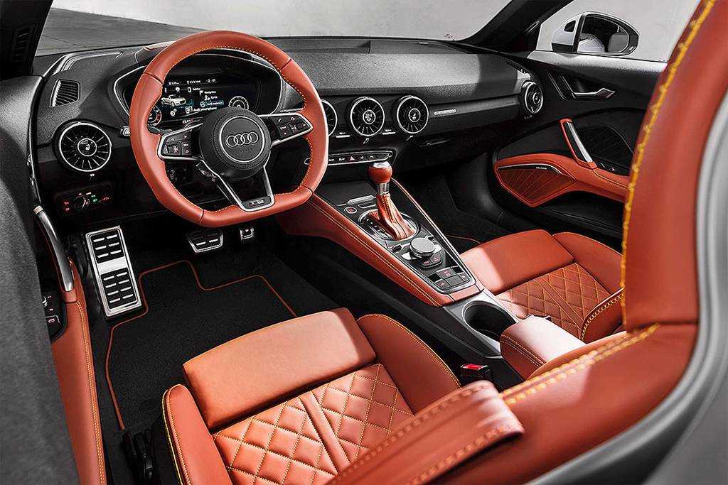 В модели TT 2019 года разработчики остались верны тенденциям концерна. Взглянув на купе-компакт и присмотревшись к деталям, понимаешь, что это уже видел в других автомобилях марки: та же «сотовая» радиаторная решётка Singlframe, те же характерные воздухозаборники в нижней части передка, характерные фары со светодиодными линиями. Однако в данной машине эти черты всё же обретают некую индивидуальность. Когда обходишь автомобиль и смотришь назад, в глаза бросается множество горизонтальных линий, которые словно расчленяют вертикальную развёртку машины, делая её ещё более обтекаемой и приземистой, выводя её из образа «игрушечного» автомобиля.