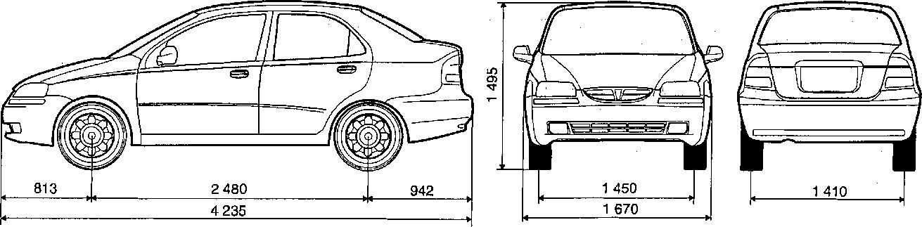 11.24. Контрольные размеры лонжеронов задка кузовов «седан» и «универсал»: