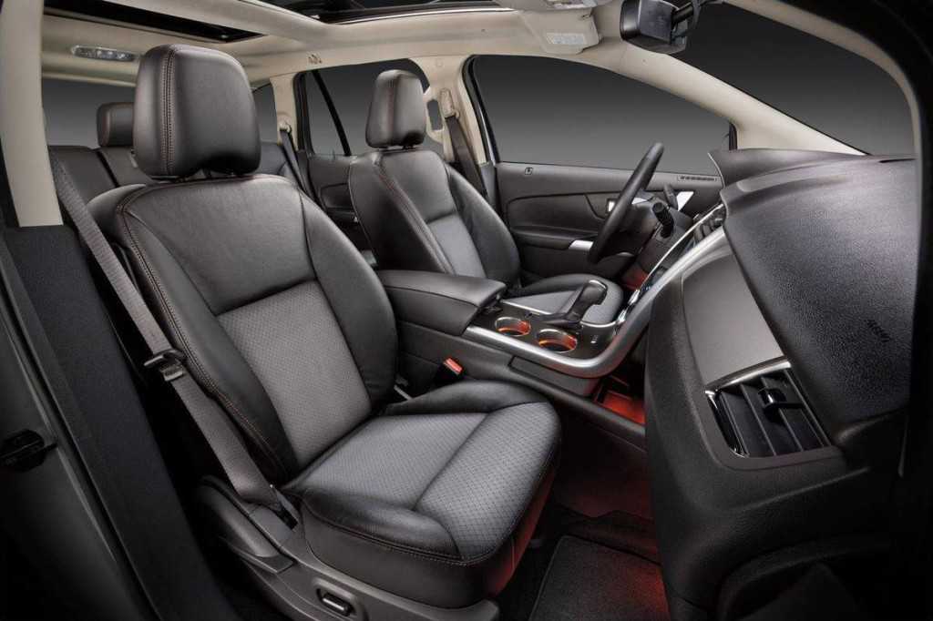 Интерьер салона отличается высокой степенью эргономичности и комфортности. Отличный комфорт пассажиров и водителя в салоне автомобиле Ford Edge (2014) гарантируют встроенная система климат-контроля, аудио техника в лучших традициях современного мира, кожаная обивка сидений. В техническом вопросе в машине есть всё: начиная от привычных стеклоподъемников, стеклообогрева и стеклоомывателей, подогрева сидения, и до систем ABS, EBD и Traction control, рулевого электроусилителя, который в России грозятся заменить на гидроусилитель.