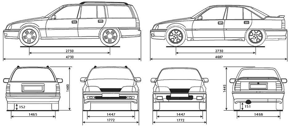 Длина кузова менялась всего один раз. Это было в 1994-м году. Она была увеличена с 4730 мм до 4768 мм. Что касается ширины и высоты Омега Караван, то они изменениям не подвергались: 1772 мм и 1481 мм соответственно.