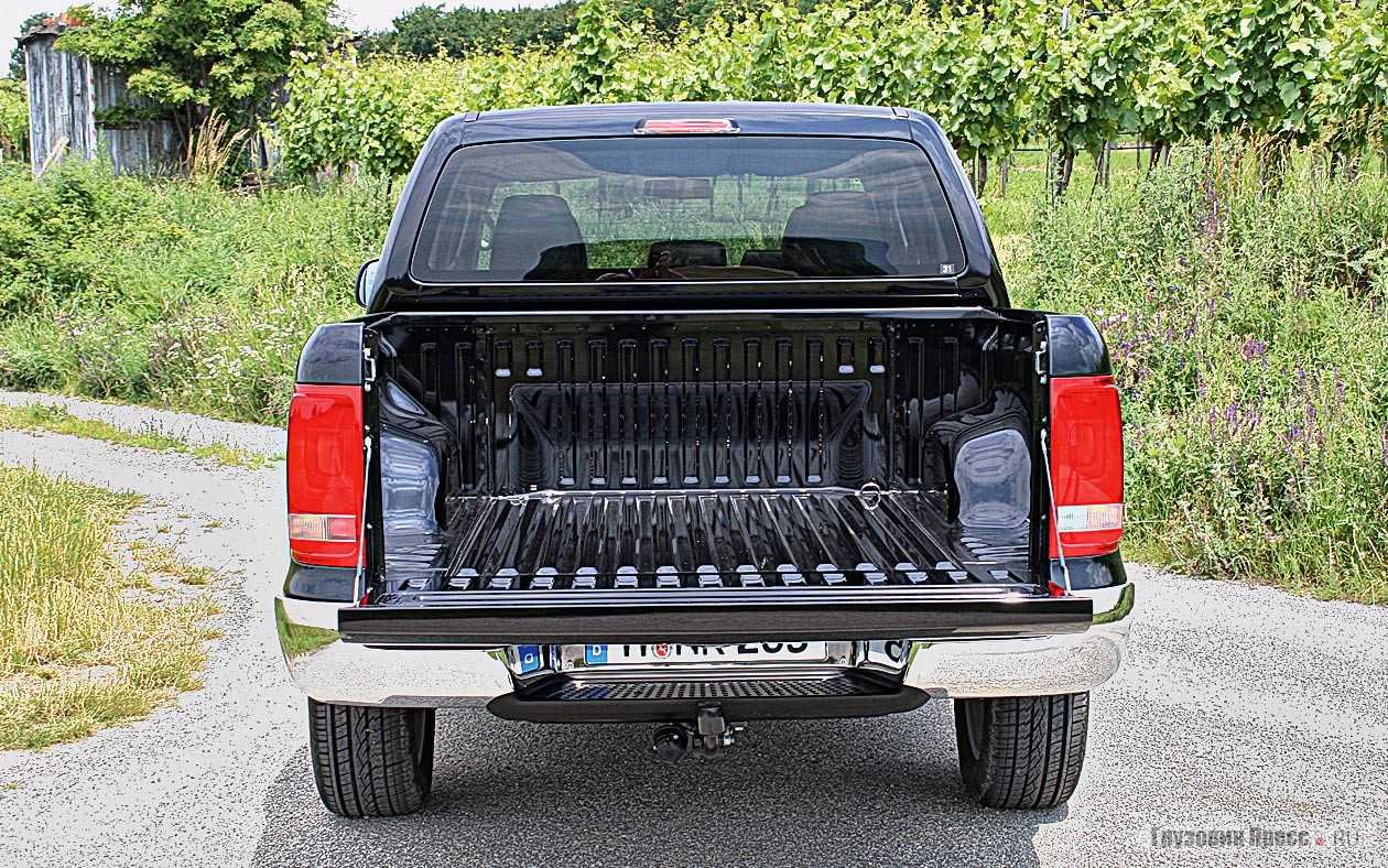 Как по конструкции, так по проходимости и по своим транспортным возможностям Amarok напоминает легкий грузовик. Конечно, его габариты вовсе не грузовые в классическом понимании: длина составляет 5254 мм, ширина – 1944 мм (по зеркалам – 2228 мм), высота – 1834 мм. Внушительная колесная база 3095 мм образует угол рампы 23°. Но даже при двойной кабине его грузовая платформа самая большая в классе: длина – 1555 мм, ширина – 1620 мм, высота – 525 мм. Ее площадь 2,52 м2 позволяет разместить большое количество различных грузов. Для ремонтных и строительных организаций это может быть цемент и керамзит в мешках, блоки из вспененного бетона, гипсокартон, оконные рамы, металлочерепица и т.д. Для частников – квадроцикл или гоночный байк, карт или водный мотоцикл, велосипед или тренажер, спортивный инвентарь, палатки и многое другое.
