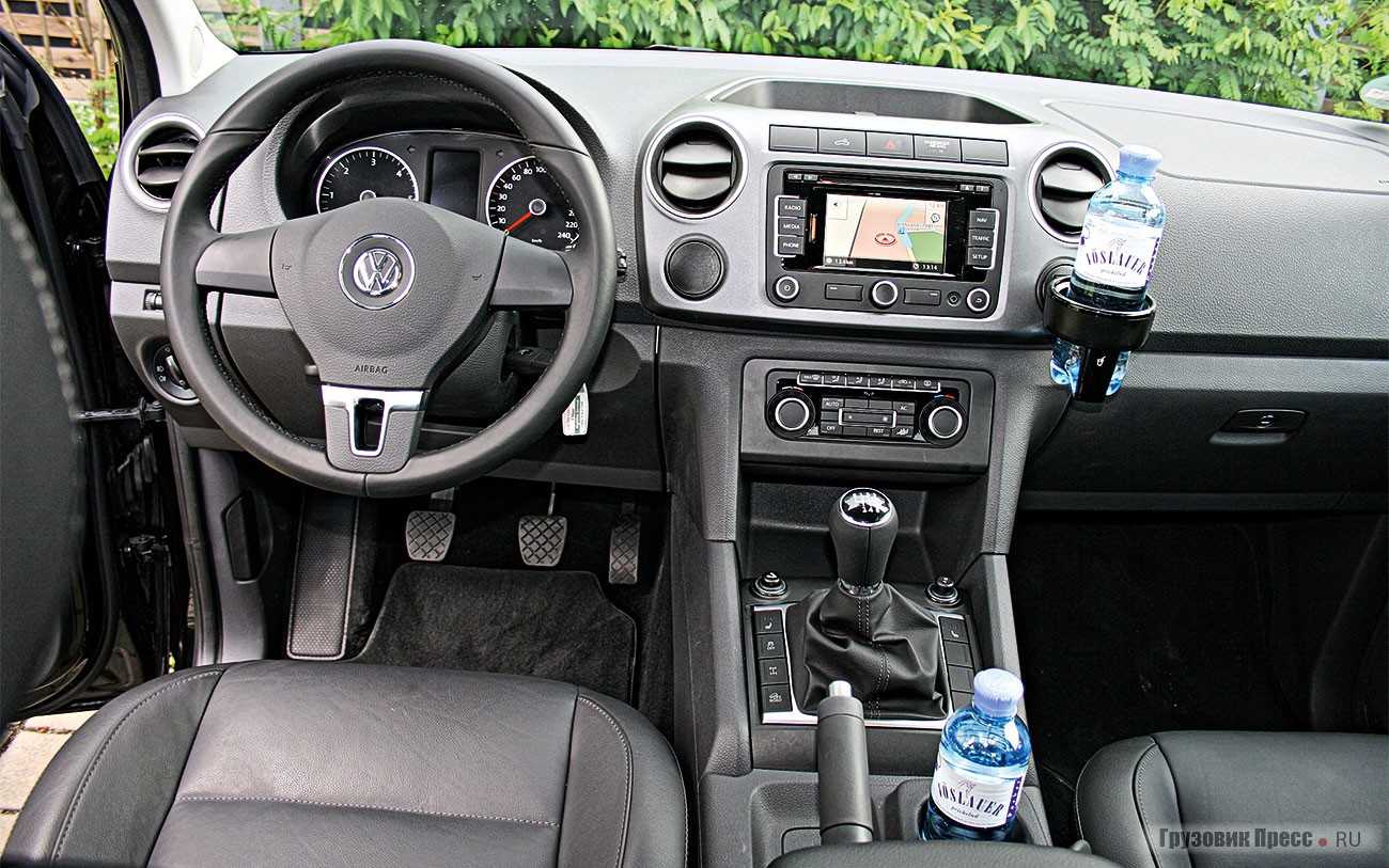 Тем, кому приглянулся Amarok, придется выбирать одну из трех линий комплектации: базовая, Trendline, Highline. База включает минимальный набор оборудования, а именно: регулируемые вручную по высоте передние кресла, запираемый перчаточный ящик, подсветку грузовой площадки. Она комплектуется 16-дюймовыми штампованными дисками колес. Передний бампер, ручки дверей и обтекатели зеркал не имеют лакокрасочного покрытия. Управление стеклоподъемниками, замки дверей и регулировка зеркал, разумеется, механические. Даже встроенные во внешние зеркала антенны для приема радиосигнала устанавливаются только за дополнительную плату.