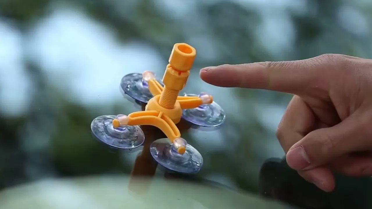 - Установите аппликатор на стекле так, чтобы его центральная часть находилась над поврежденным участком. Следите, чтобы присоски не перекрывали скол или трещину. Отрегулируйте положение присосок, слегка надавите на аппликатор, чтобы он зафиксировался.