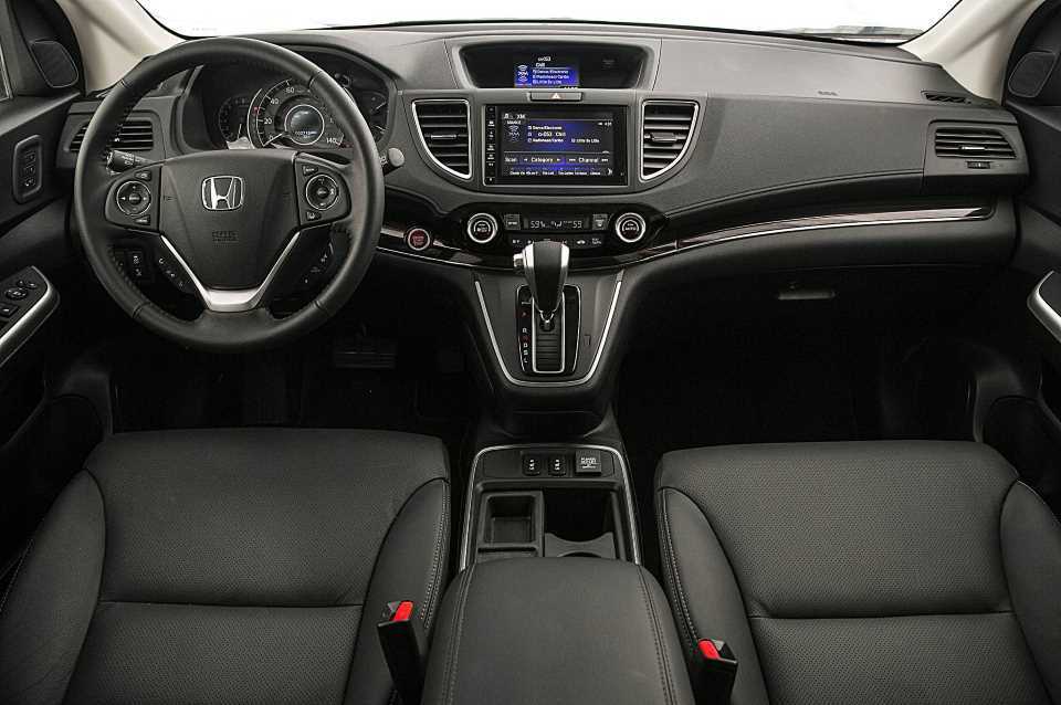 В салоне Honda CR-V кардинальным изменениям подверглись материалы отделки и оформление центральной консоли, которая немного потеряла в размерах. Консоль оснащена семидюймовым монитором мультимедийной системы с сенсорным управлением и блоком управления климат-контролем, расположенным ниже.
