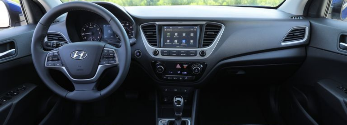 Приятно удивило, что новая модель Хендай Акцент 5 обладает полноценно новой передней торпедо, выглядевшей современно, привлекательно, однако презентабельно. Сев на водительское место, можно заметить пухлый, комфортный по сечению трехспицевый мультируль. Кроме этого, можно заметить лаконичную, но информативную комбинацию приборов, представленную парой аналоговых циферблатов, а также располагающийся между ними ЖК-монитор маршрутного компьютера.