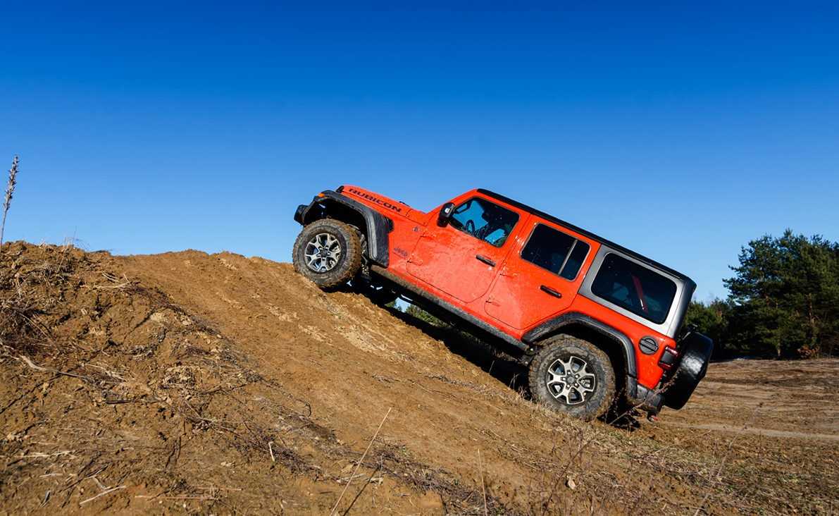 With heavy-duty solid axles front and rear, locking differentials, an electronic front anti-roll bar that can be disconnected, all-terrain tires, and Apple Car Play/Android Auto smartphone integration, the Rubicon is a top off-roader.