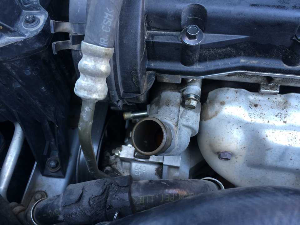 Берем головку на 12, желательно в виде буквы «Г», выбиваем два болта, которыми термостат крепится к блоку двигателя. Это потребует некоторых усилий, потому что эти крепления уже были прикреплены, и они были затянуты до упора.