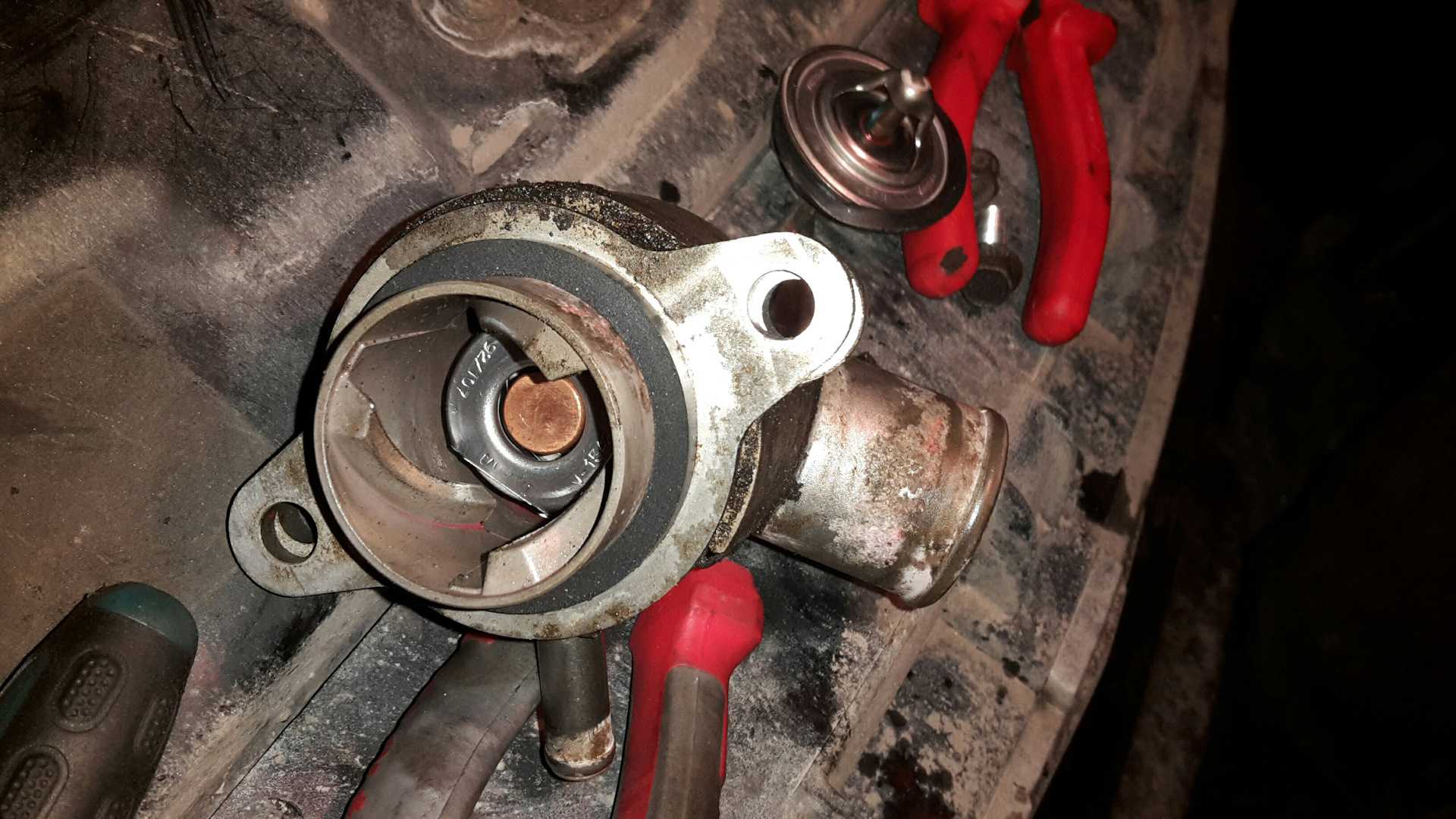 Тщательно протрите седло термостата. Особенно, если кто-то до тебя залил туда герметик