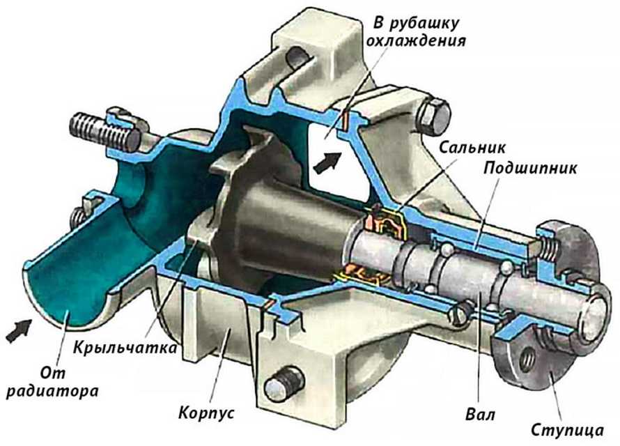 — износ узлов устройства, в том числе старение сальника. Если сальник плохой, антифриз или тосол постепенно просачивается в полость к подшипникам, вымывая их смазку. Из-за этого подшипники начинают работать гораздо громче и быстро изнашиваются, что ведет к заклиниванию помпы;