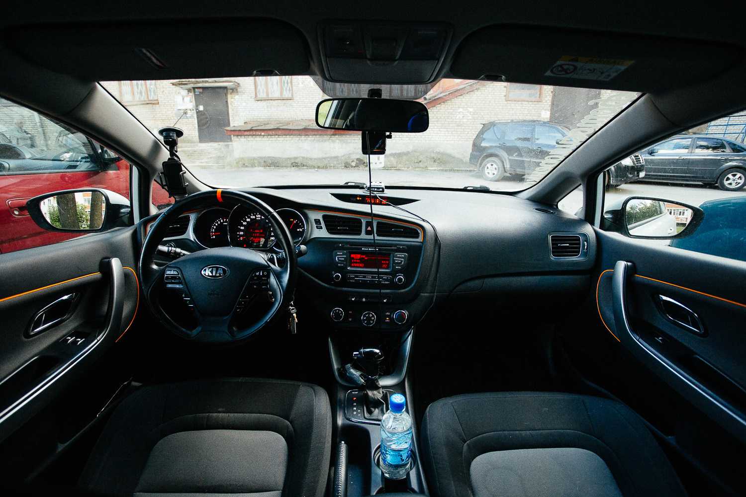 Салон автомобиля KIA Ceed сохранил свой дизайн. Изменения коснулись лишь небольших деталей интерьера. Дверные ручки и приборная панель теперь имеют хромированную окантовку. Кнопка запуска мотора выполнена из алюминия. Глянцевые поверхности имеют не царапающееся покрытие. Изменено оформление рулевого колеса.
