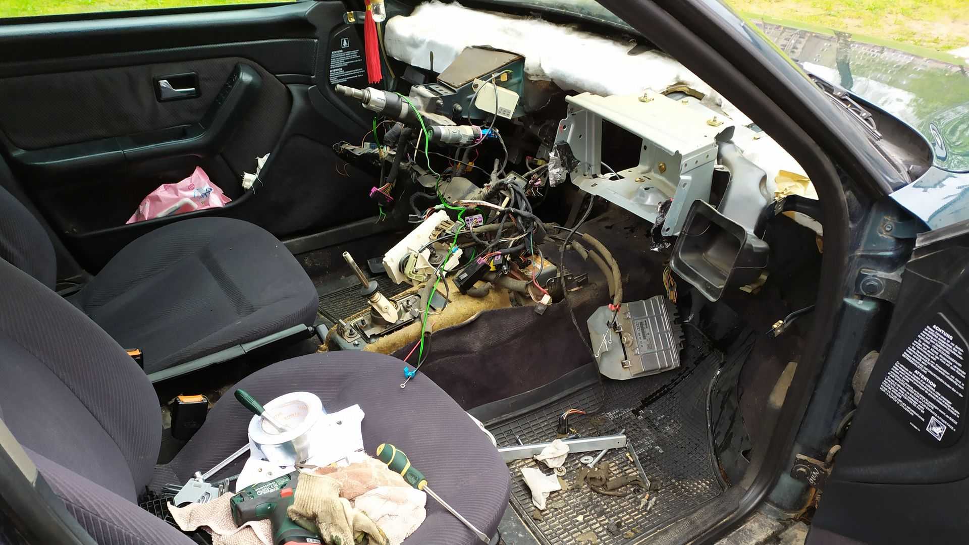 С обеими проблемами я столкнулся и пришлось пройти так называемое “посвящение в бочководы”. Как говорится, сам чуть не умер, но дело сделано. Масштаб работ по замене печки в Audi 80 (это здесь еще без фотографий под капотом – там тоже надо повозиться, чтобы отсоединить корпус печки) на фотографиях: