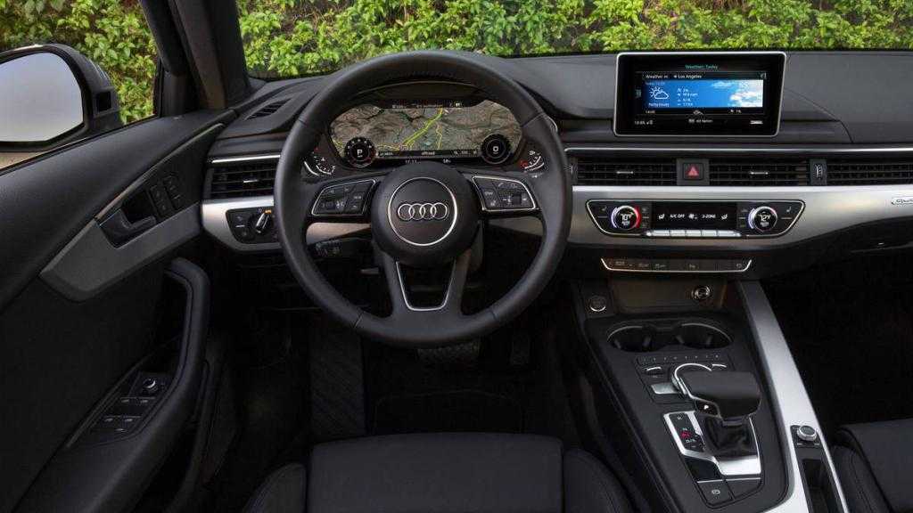 Салон Audi A4 B9 претерпел кардинальные изменения. Дефлекторы вентиляции растянулись по всей длине передней панели, некоторые элементы интерьера выделены алюминиевой окантовкой, а центральная консоль плавно переходит в подлокотник. Базовые цвета салона – черный и серебристый.