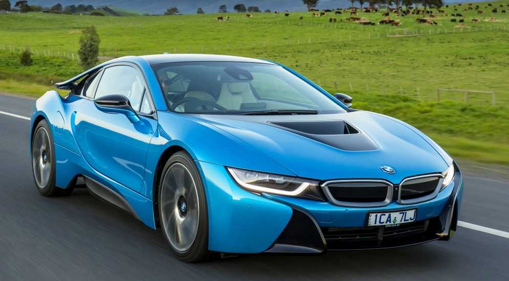 BMW i8 — полноприводное гибридное 2-дверное купе, в котором на переднюю ось передается момент от электродвигателя, а на заднюю — от 3-цилиндрового бензинового мотора.