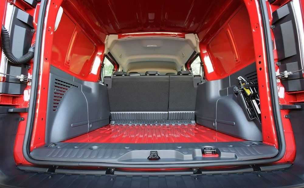 В кузове фургона автомобиль доступен с двигателем 1,6 в 90 и 110 л. с., с пятиступенчатой механикой. Разновидностей кузова тоже две – стандартный и удлиненный. Подушка безопасности размещена только на месте водителя. Так как второй ряд пассажирских сидений отсутствует, то и систем хранения гораздо меньше – есть крюк для сумок под панелью приборов и дополнительная полка для вещей рядом с ним.