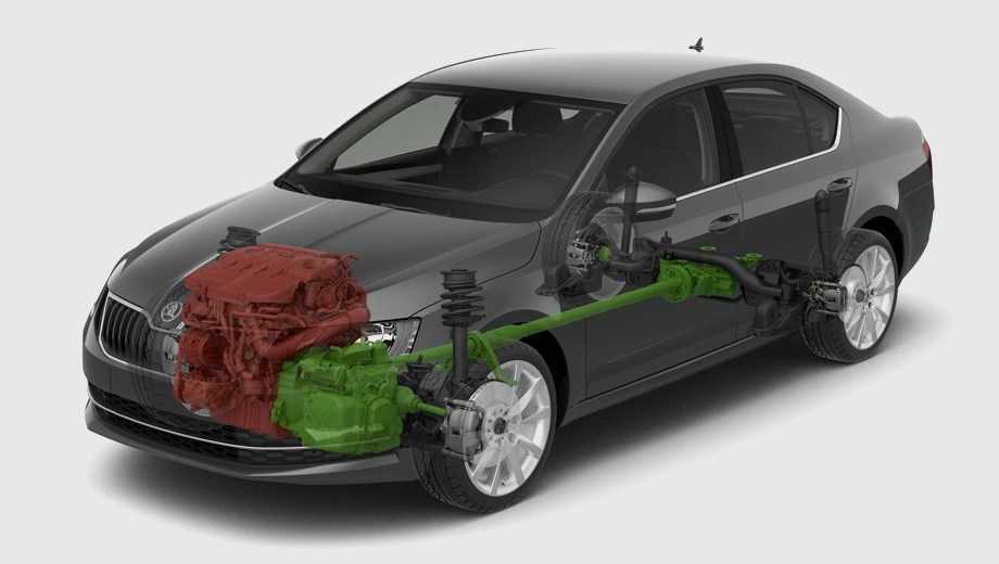 В основе Octavia 2017 лежит модульная конструкция MQB: спереди у нее расположены стойки МакФерсон с алюминиевым подрамником, а сзади — многорычажная подвеска (у модификаций, чья мощность выше 150 л.с.), либо полузависимая балка. Все новые лифтбэки и универсалы, предназначенные для продажи в России, предлагаются с пакетом для плохих дорог — в него входят пружины и амортизаторы, которые увеличивают дорожный просвет на 1,5 см — до 15,6 см против 14 см у европейского варианта. В результате обновления задняя колея у машин с 1,6-литровым двигателем MPI и 1,4-литровым мотором TSI выросла на 2 см, а у версии с 1,8-литровым движком TSI она стала больше на 3 см, что, впрочем, никак не повлияло на ездовой комфорт. У модификаций с полным приводом увеличился диаметр подшипника задней ступицы.