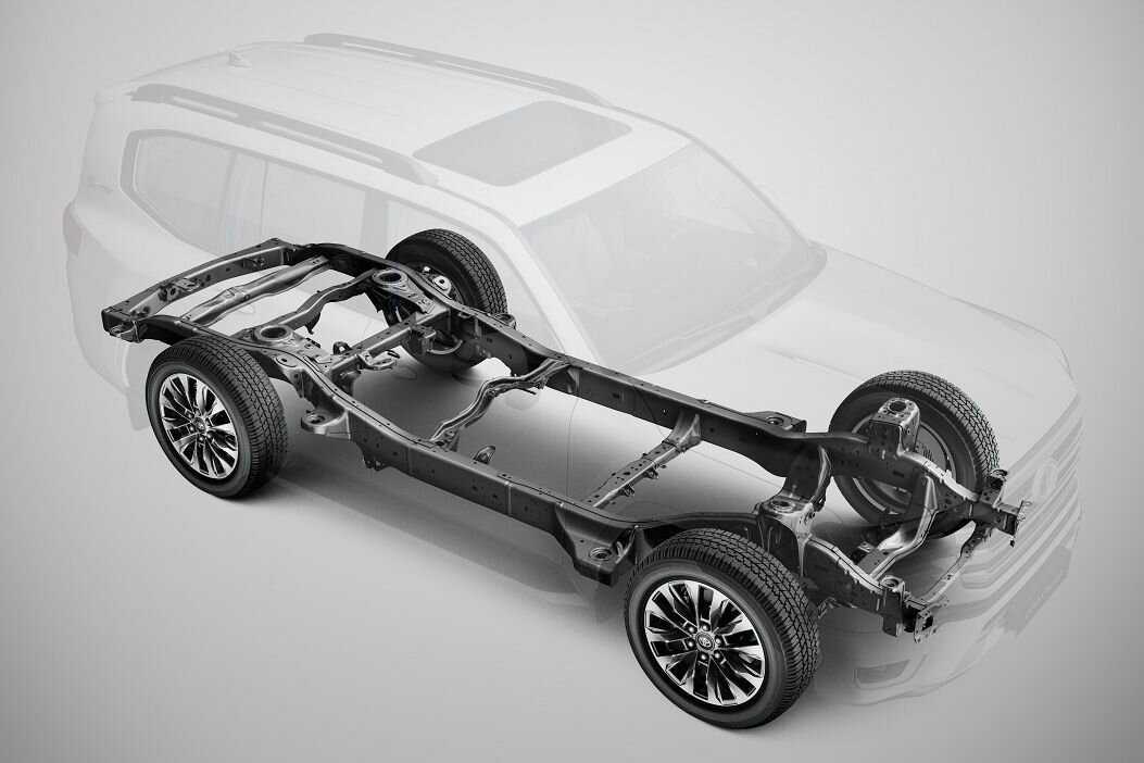 Пятидверный кузов покоится на ступенчатой раме, прочность которой повышена за счёт использования новых материалов и технологий. Снижение массы конструкции благоприятно отразилось на развесовке и расположении центра тяжести внедорожника.