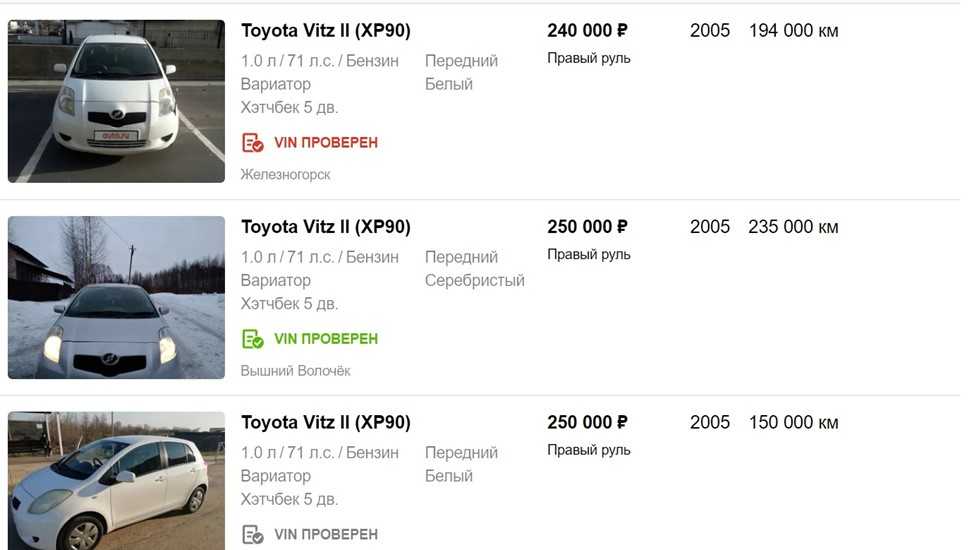 Vitz. Ездила она на нем четыре года, проехала 70 000км. Пробег на момент покупки
