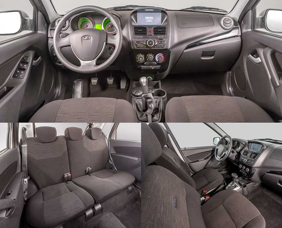 Большая часть салона автомобиля выполнена из жесткого пластика. Исключением являются лишь некоторые его элементы: рулевое колесо, обитое мягким пластиком, и прорезиненые шайбы настройки климата. Передние сидения и некоторые элементы торпедо остались с первой Kalina без изменений.