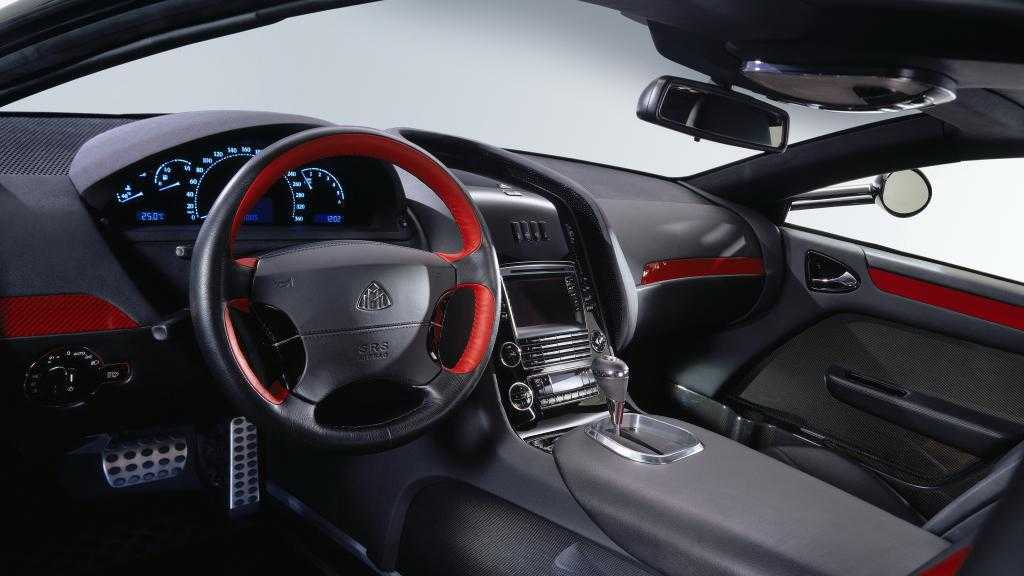 The Maybach Exelero offers a sophisticated and luxurious interior. The car features premium materials, advanced technology, and custom-designed elements. The Exelero’s interior is mainly made of glossy black carbon fiber, red and dark leather, neoprene, and aluminum accents. The Exelero features sports seats with red seatbelt harnesses.