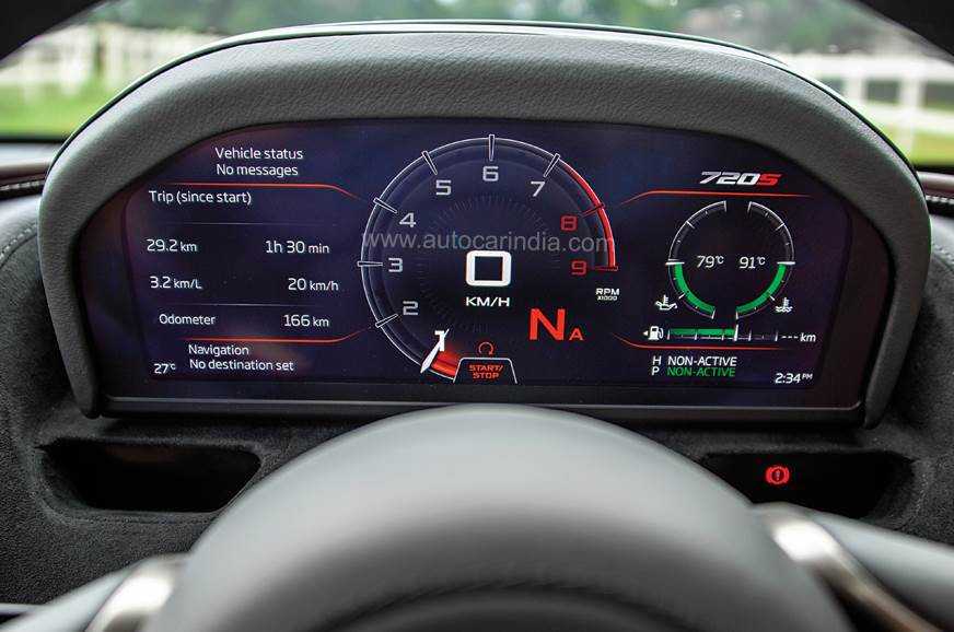And speaking of buttons, McLaren doesn’t have a single one on the steering wheel, quite the opposite of Ferrari. It uses conventional stalks to operate the lights, wipers, and indicators, while the driving modes can be selected via two chunky knobs (one for the engine and one for the chassis settings) on the centre console. The slim centre console gets a portrait-oriented touchscreen which gets narrower towards the bottom where the D, N and R buttons are located.