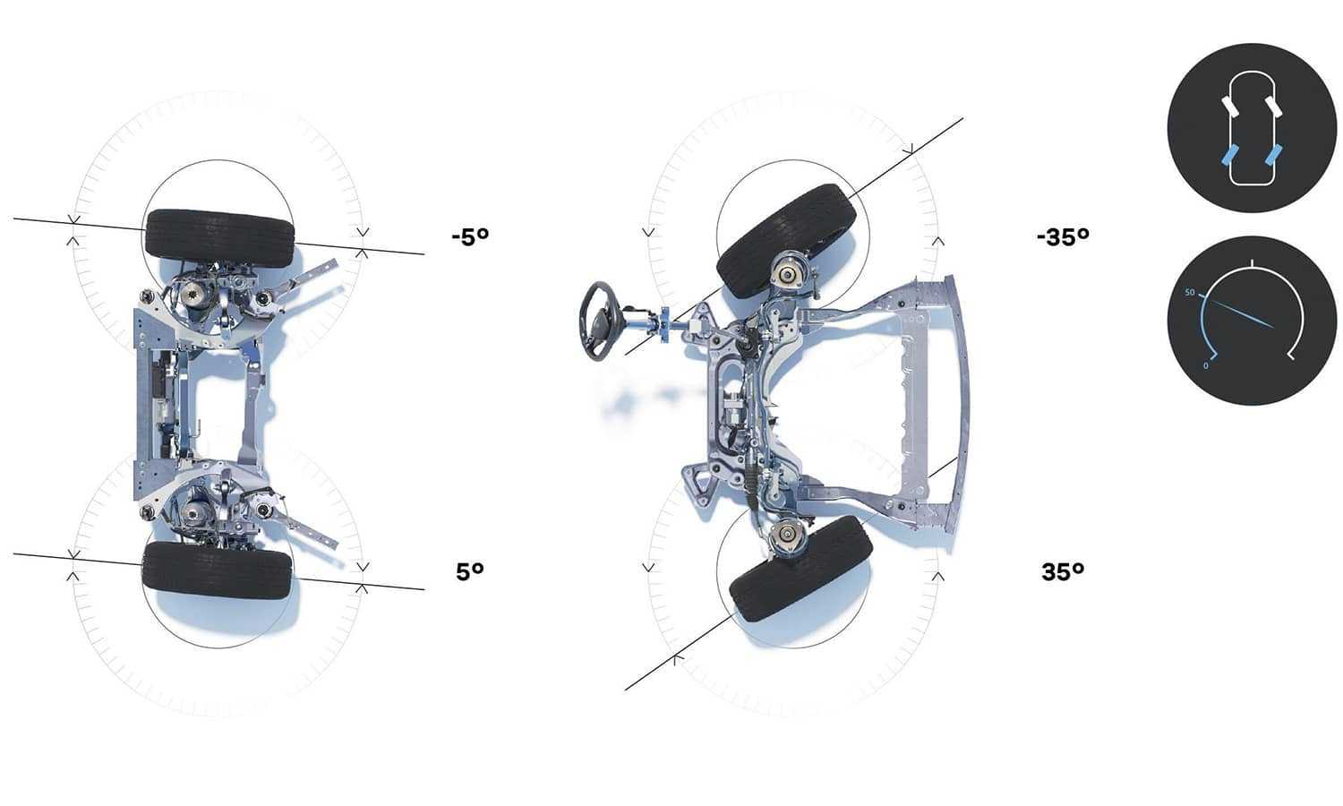 4CONTROL оптимизирует положение задних колес на дорогах с непостоянным покрытием и других поверхностях. Чтобы обеспечить беспрецедентную устойчивость, на высоких скоростях или при повороте со скоростью более 50 км/ч система слегка поворачивает задние колеса в том же направлении, что и передние колеса (но только до 1 градуса). На более низких скоростях она поворачивает задние колеса на угол до 5 градусов в противоположном направлении, обеспечивая непревзойденную маневренность в городе.