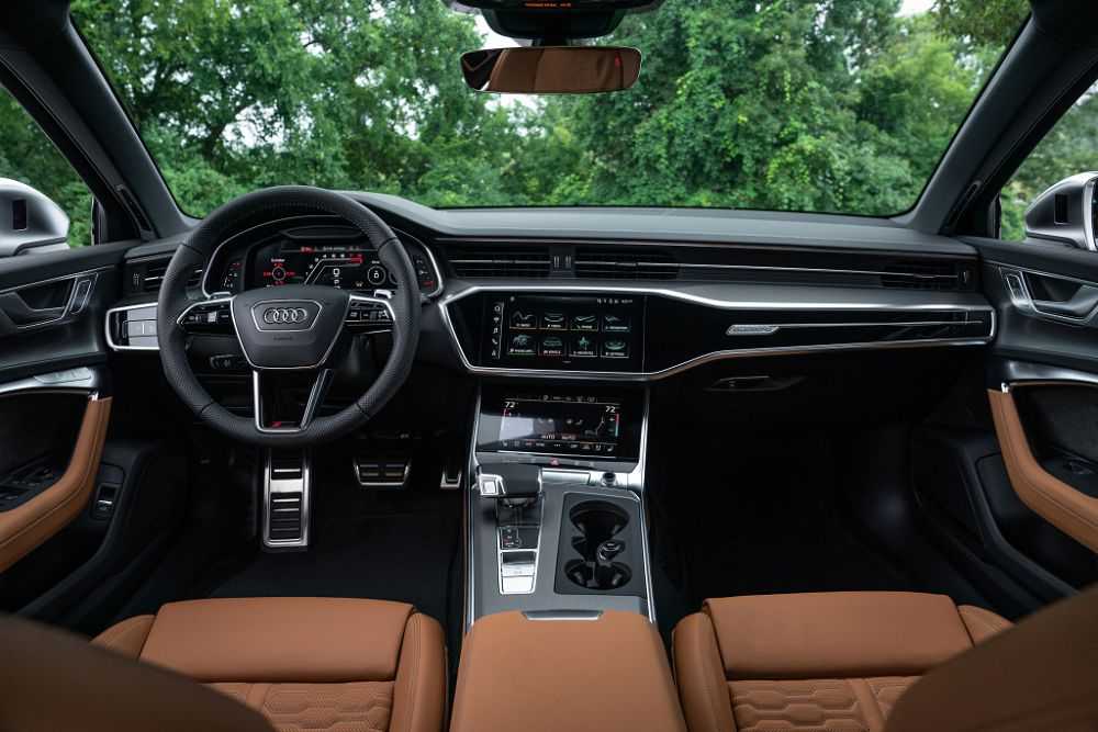 The 2023 Audi RS6 Avant also has a list of high-end standard features that include heated and ventilated front seats, four-zone climate control, panoramic sunroof, and wireless charging. The interior can be enhanced with a head-up look, massaging front seats, richer leather, and heated rear seats. The carriage has 30 cubic feet of cargo space behind the rear seats as well. Powered rear liftgates are standard while motion-activated lifts are optional.