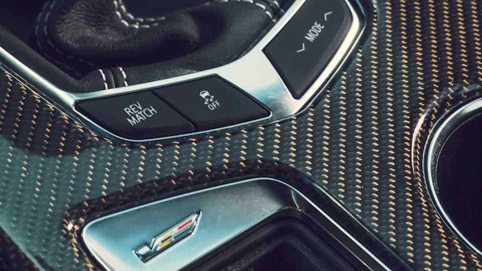 Интерьер CT4-V Blackwing заметно отличается от интерьера ATS-V. В предыдущем автомобиле была атмосфера «дешевого арендованного немецкого автомобиля», но новый CT4 отличается качеством и мастерством отделки, даже если еще есть места для улучшений. Нам действительно больше всего понравилась переработанная приборная панель. Автомобиль оснащен новейшей информационно-развлекательной системой CUE от Cadillac и полностью цифровой приборной панелью. Мы также обратили внимание на переработанное рулевое колесо, на котором теперь заметен переключатель PTM в положении «5 часов» — определенно лучше так, чем скрывать эту функцию в меню контроля тяги, как в прошлых авто. Мы также были поклонниками ковшеобразных сидений с толстой отделкой, обтянутых кожей или углеродным волокном, хотя подлокотники показались нам жесткими, а автомобиль в целом довольно тесным. Хотя Cadillac CT4-V Blackwing 2021 года выпуска не быстрее, чем ATS-V или небольшой спортивный седан Cadillac с двигателем V-8, он является одним из самых приятных в управлении и шустрых автомобилей класса люкс