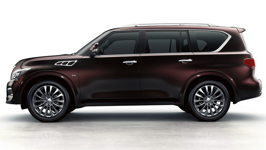 Infiniti QX80 является переименованной моделью QX56. Автомобиль практически не изменился ни внешне, ни внутри, за исключением нескольких элементов. Дебют данной модели состоялся в 2013 году. Внедорожник выпускаться как с полным, так и с задним приводом. Солидные размеры придают автомобилю мужественность, а обтекаемые линии корпуса грациозность. Фирменная решетка радиатора, воздухозаборники и 22-дюймовые литые диски дополняют образ.