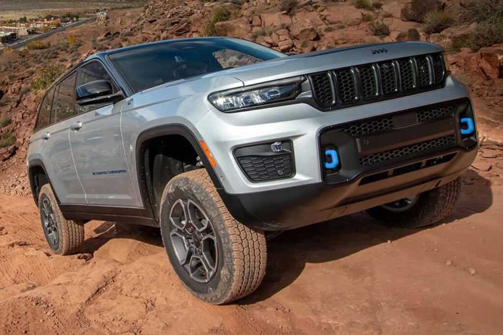 The 2023 Jeep Grand Cherokee 4xe, unlike the gas-powered 2023 Grand Cherokee, is available in an extra-rugged Trailhawk grade. Image Source: Stellantis