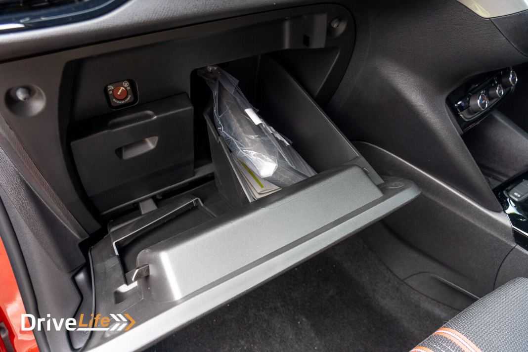 The glove box does the whole Peugeot/Citroen thing of having a full-size lid, and then a half glovebox. The owner’s manual lives in here, but there isn’t much room for anything else. Up front, there is a single USB-A port and a 12-volt socket. The Corsa SRi does have Apple CarPlay and Android Auto, but you’ll need to connect a USB cable to use either as they don’t work wirelessly – but that’s not to be expected at this price point.