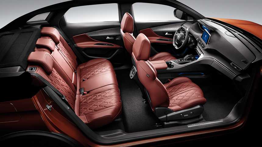 На втором ряду стало просторнее, хотя меблировка не изменилась: подушки сидений закреплены жестко, спинки складываются в традиционной пропорции 60:40, а между передними сиденьями торчит утес консоли с дефлекторами обдува. Передняя часть салона та же, разве что базовое оформление виртуальных приборов решено в традиционном ключе, хотя такую настройку можно выбрать и в меню «три тысячи восьмых».