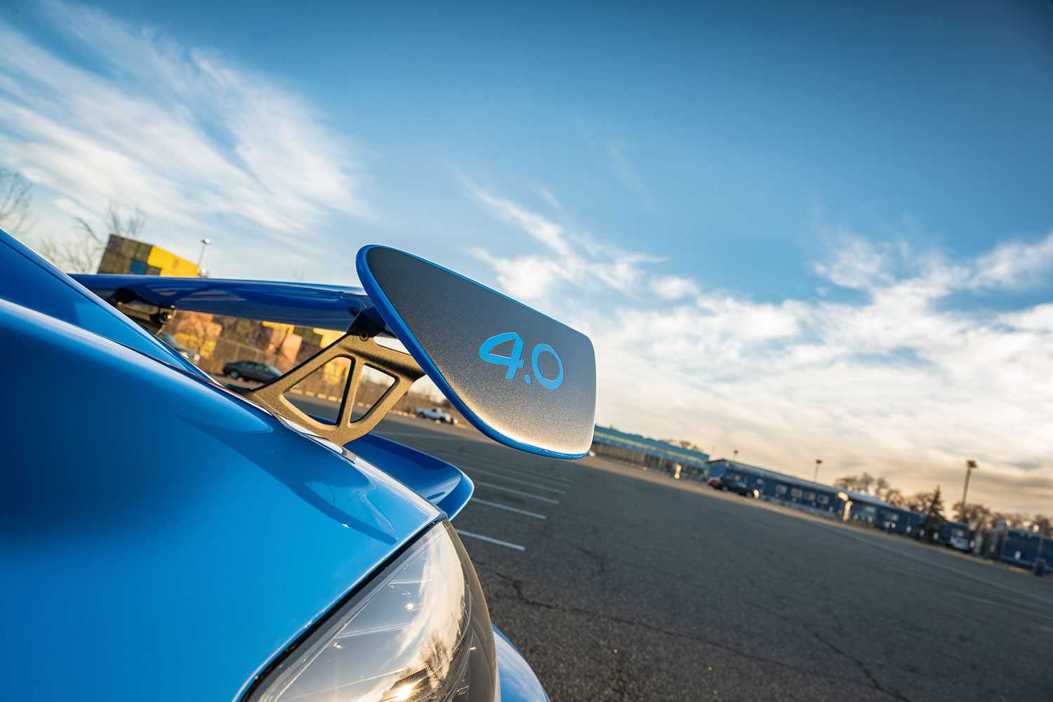 On the aerodynamics side of things, the GT4 RS has 25 percent more downforce than the regular GT4 at 125 mph. The list of what Porsche has added or upgraded to produce that much of an increase is long. A massive new rear wing with side plates and swan-neck supports, fender wheel well air vents, adjustable front diffusers, and a revised front and rear facia all contribute to the car’s newfound downforce.