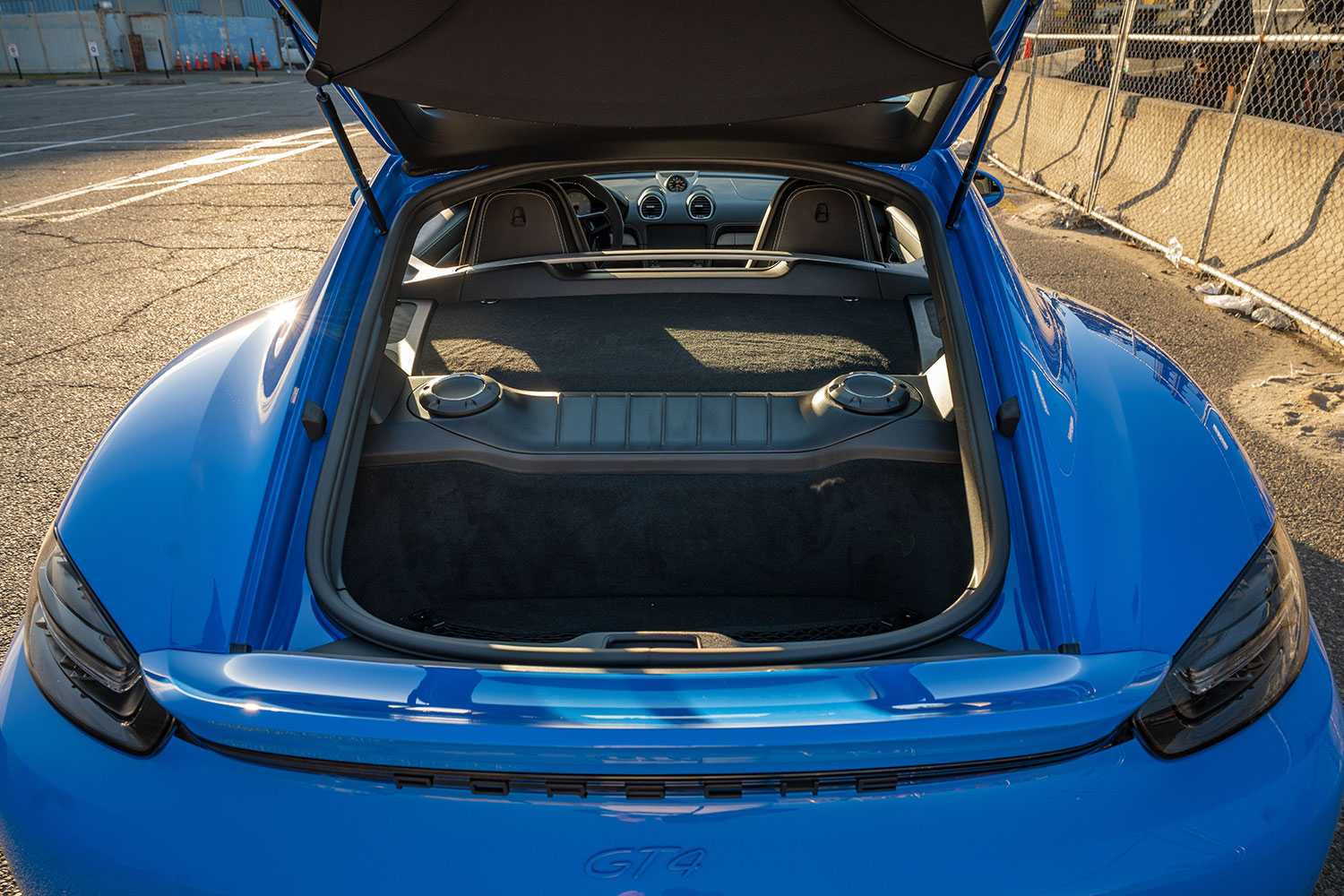Although tiny, the Cayman does offer a somewhat useable trunk out back, and a versatile frunk up front to allow for a fun weekend getaway without sacrificing several outfits. To keep all that cargo safe, the Cayman comes available with adaptive cruise control, active blind-spot monitoring, as well as rain-sensing wipers and both front and rear parking assist.