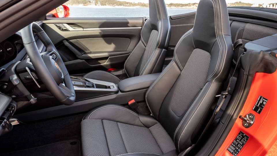 Of the many 911 models we’ve driven, all benefit from premium leather seat upholstery that looks and feel appropriate for a $100,000-plus sports car. Heated front seats are standard on the base Carrera and ventilation is available.
