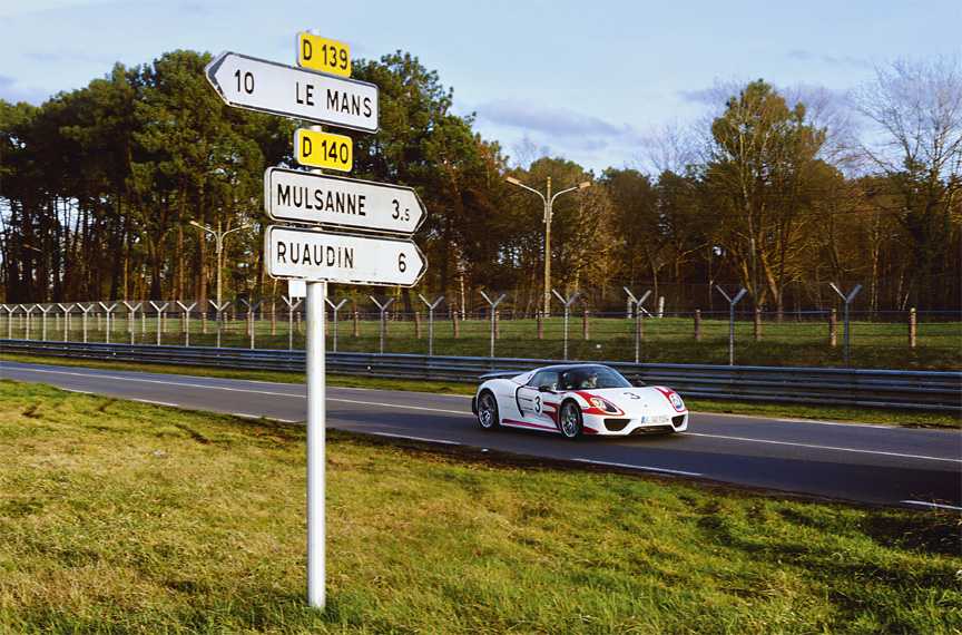 On the public road that once in a year transforms into the Le Mans 24 hour race track Porsche
