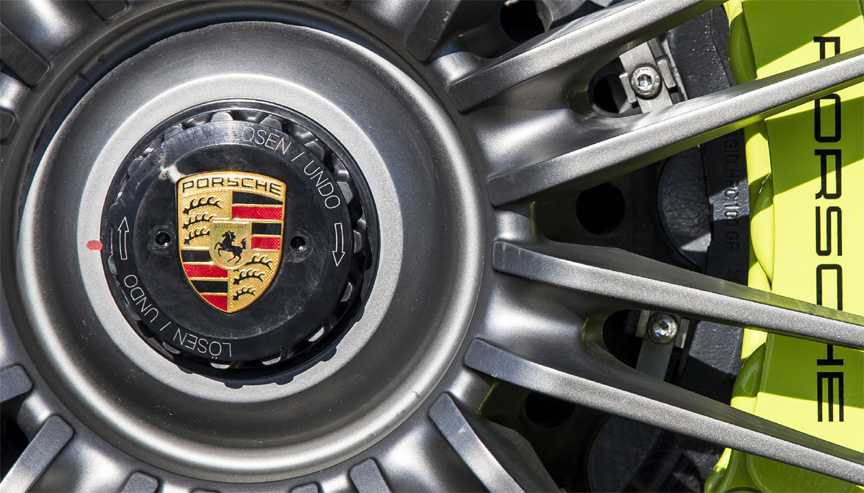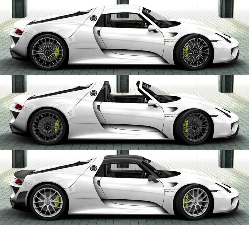 1: standard equipment, 2: wheels painted Platinum, roof panel removed, 3: Weissach package (includes magnesium wheels). Porsche