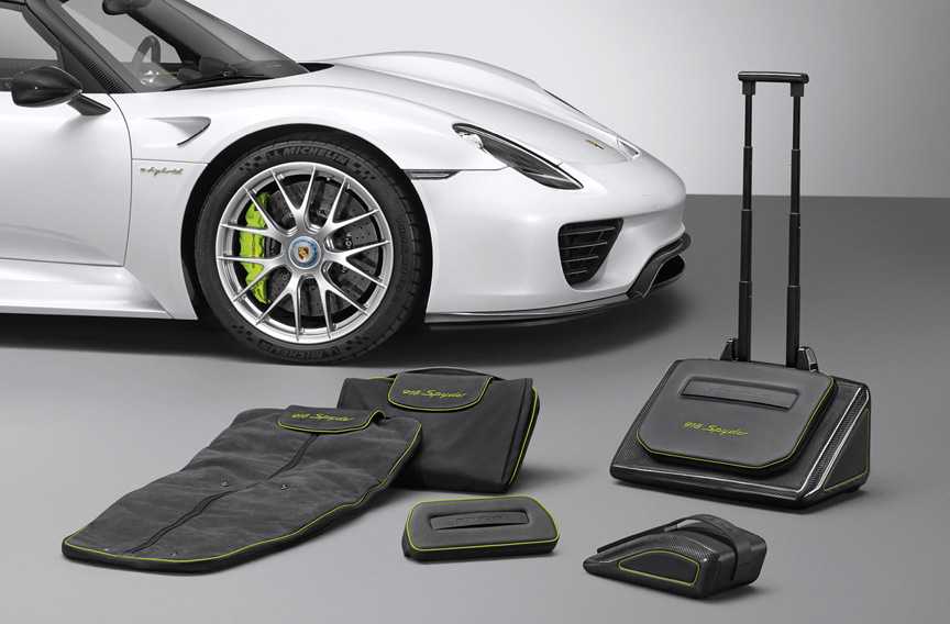 Designed by the Porsche Design Studio and developed by Porsche in Weissach, the luggage collection is an ideal match for the interior. The luggage set was available in the same color combinations as the interior: Garnet Red-Silver, Onyx Black-Acid Green, Onyx Black-Silver, Mocca Brown-Silver and Mocca Brown-Orange. Porsche